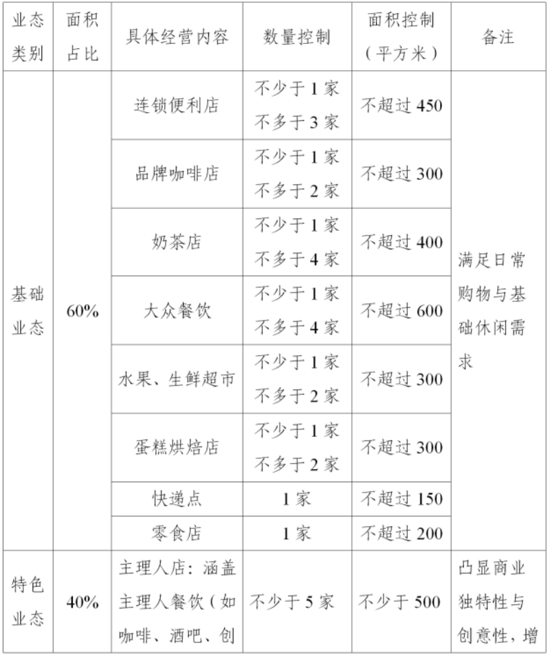 結(jié)合街區(qū)面積、地上商業(yè)布局及客群需求,業(yè)態(tài)規(guī)劃具體如下: