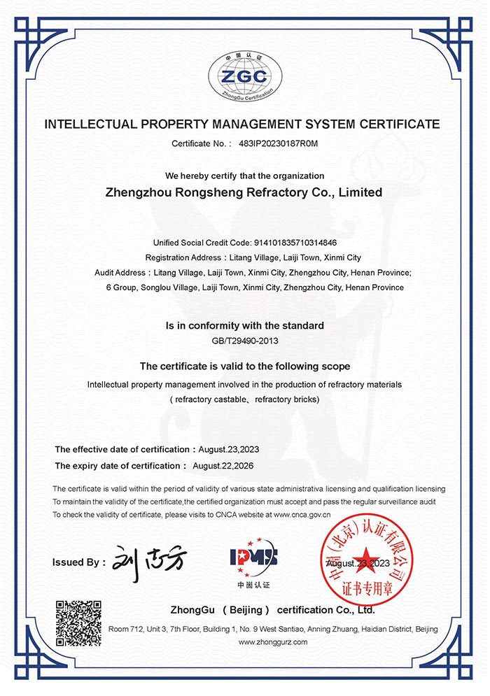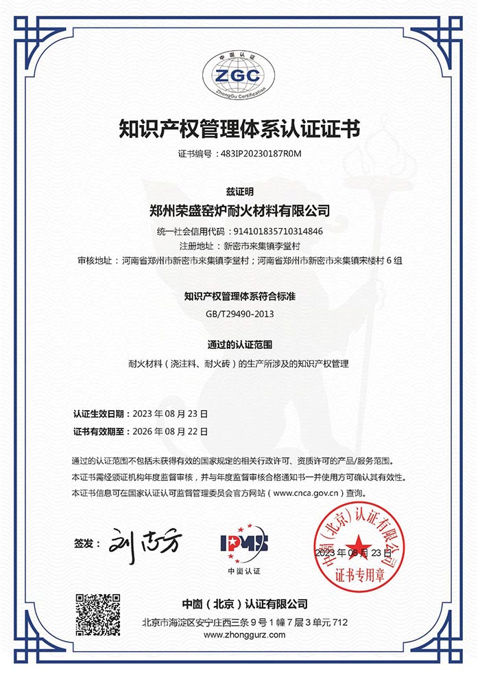 近日,鄭州榮盛窯爐耐火材料有限公司(以下簡稱「榮盛耐材」)順利通過知識產(chǎn)權(quán)貫標(biāo),并獲得了《知識產(chǎn)權(quán)管理》中英文雙語。該項的順利通過,標(biāo)志著榮盛耐材構(gòu)建了一套規(guī)范化、系統(tǒng)化、程序化、精細(xì)化的知識產(chǎn)權(quán)管理。