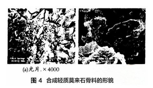 圖4為1350℃×6h燒后的合成莫來石輕質(zhì)骨料的斷口和光片,在顯微電鏡下觀察合成料的組織結(jié)構(gòu)和莫來石的生成與析晶狀況。坯體料經(jīng)燒成后,中的Al2O3、SiO2沒有完全反應(yīng)。未反應(yīng)的工業(yè)氧化鋁轉(zhuǎn)化為高溫相α-Al2O3,而未反應(yīng)的硅石會在降溫過程中發(fā)生相變,使得硅石顆粒呈現(xiàn)菜花狀開裂的現(xiàn)象,在玻璃相存在的地方,有針柱狀的莫來石生成,如圖4(a)所示。由于多孔材料的固相傳質(zhì)受限,所發(fā)生的固相反應(yīng)多為“原位”型反應(yīng),即在Al2O3和SiO2接觸的地方原位生成莫來石新相,而在兩者不接觸的顆粒內(nèi)部區(qū)域,則各自保持原有狀態(tài),如圖4(b)所示??梢酝葡耄员緦嶒灩に嚭铣奢p質(zhì)多孔莫來石骨料的莫來石轉(zhuǎn)化率有一上限值,這個上限轉(zhuǎn)化量的大小與反應(yīng)物的特性以及分散均勻程度息息相關(guān)。本工作中Al2O3源和SiO2源的細(xì)度約為10-20μm,顯微均勻程度仍不理想,限制了莫來石轉(zhuǎn)化率的提高。如何提高坯料中Al2O3和SiO2成分間的分散均勻程度也是下一步工作中值得深入研究的。